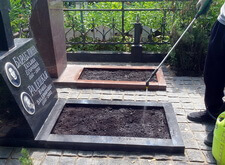 Пока семена всходили, мы восстановили надписи на памятниках, а также протёрли сами надгробья специальной жидкостью, защищающей гранит.